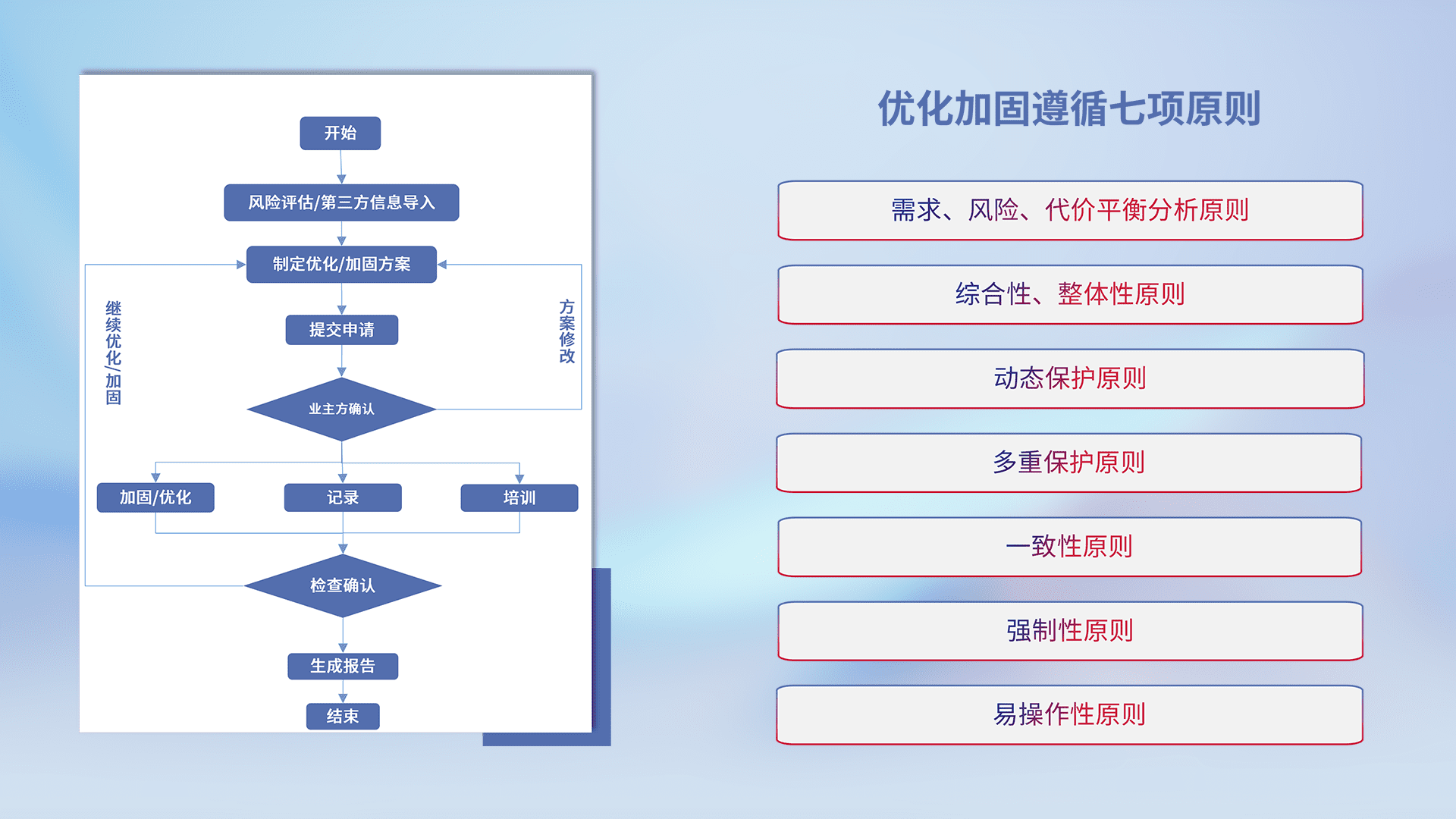最大程度利用现有资产,,,,对评估发现的问题进行封堵与整改,,,,防止漏洞被利用,,提升整体网络安全性,,,为客户带来高标准的优化加固服务。。。。